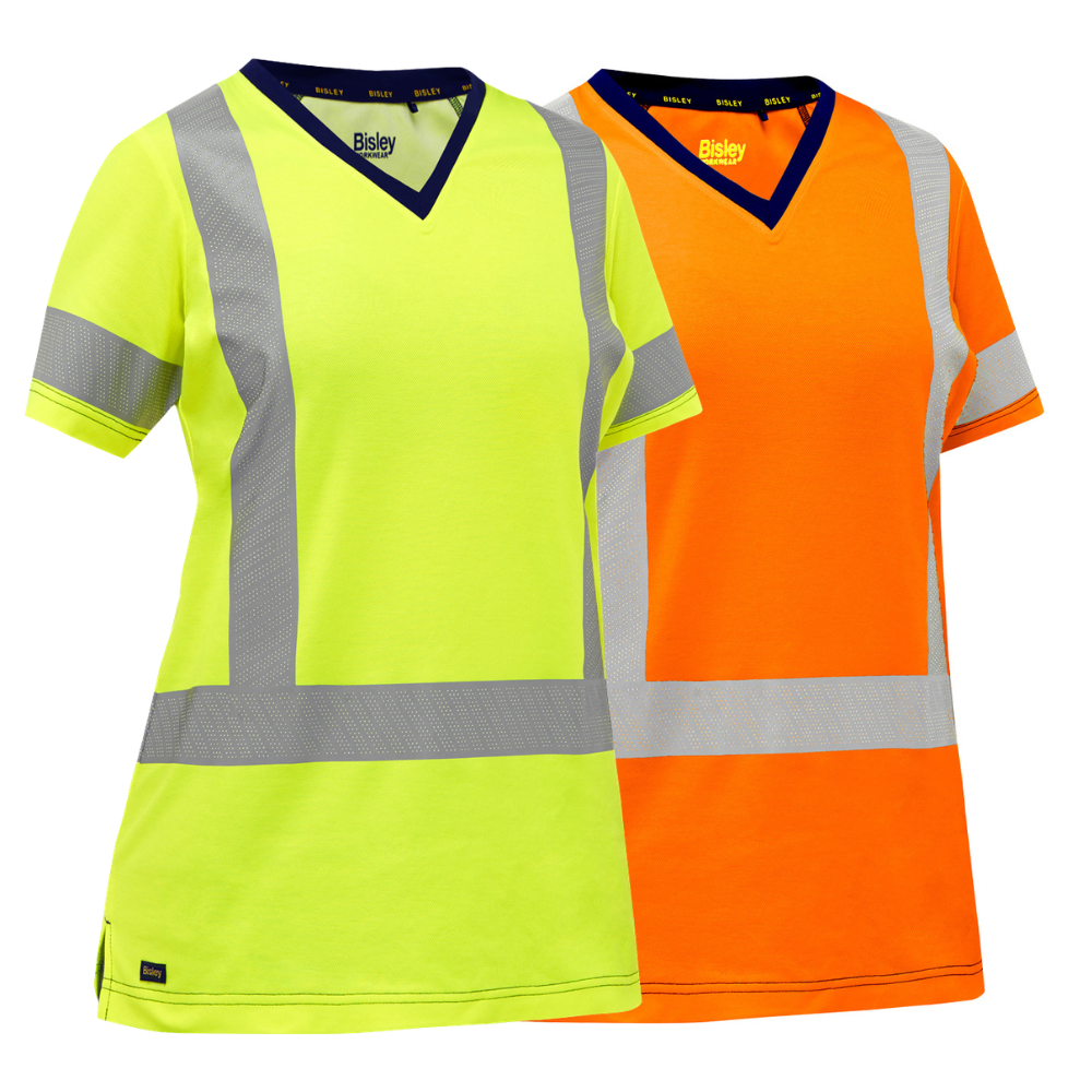 Constructed from a durable yet lightweight performance moisture‑wicking fabric, this hi‑vis women’s shirt features a soft cotton backing for improved breathability and all‑day comfort during long shifts. The contrast‑color V‑neck offers ergonomic comfort while maintaining a clean, professional appearance.