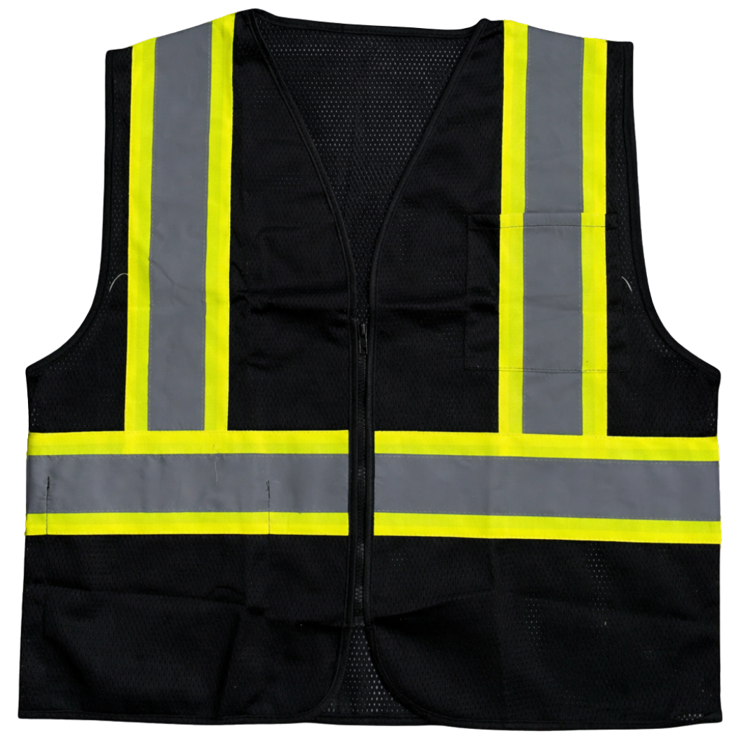 • Black safety vest with two-tone contrasting trim